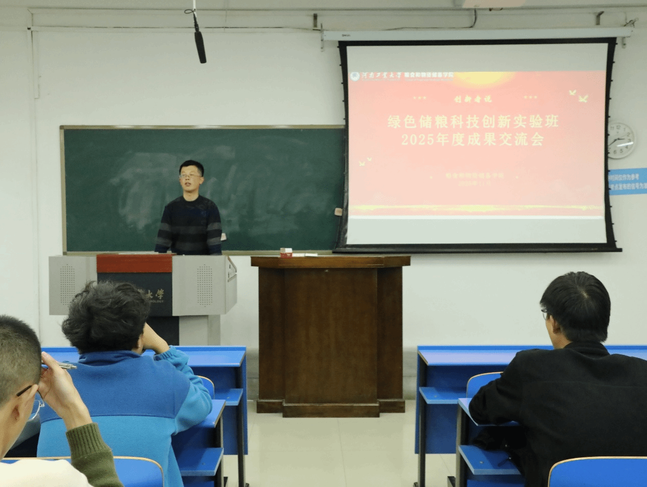 为深化绿色储粮领域人才培养,助力学子提升学科竞赛能力、积累实战经验,粮食和物资储备学院于2025年11月25日在4号教学楼137教室召开“创新者说”绿色储粮科技创新实验班成果交流会。会议由学院团委副书记刘宇畅主持,绿色储粮科技创新实验班学员代表及全体2024、2025级学生参会。