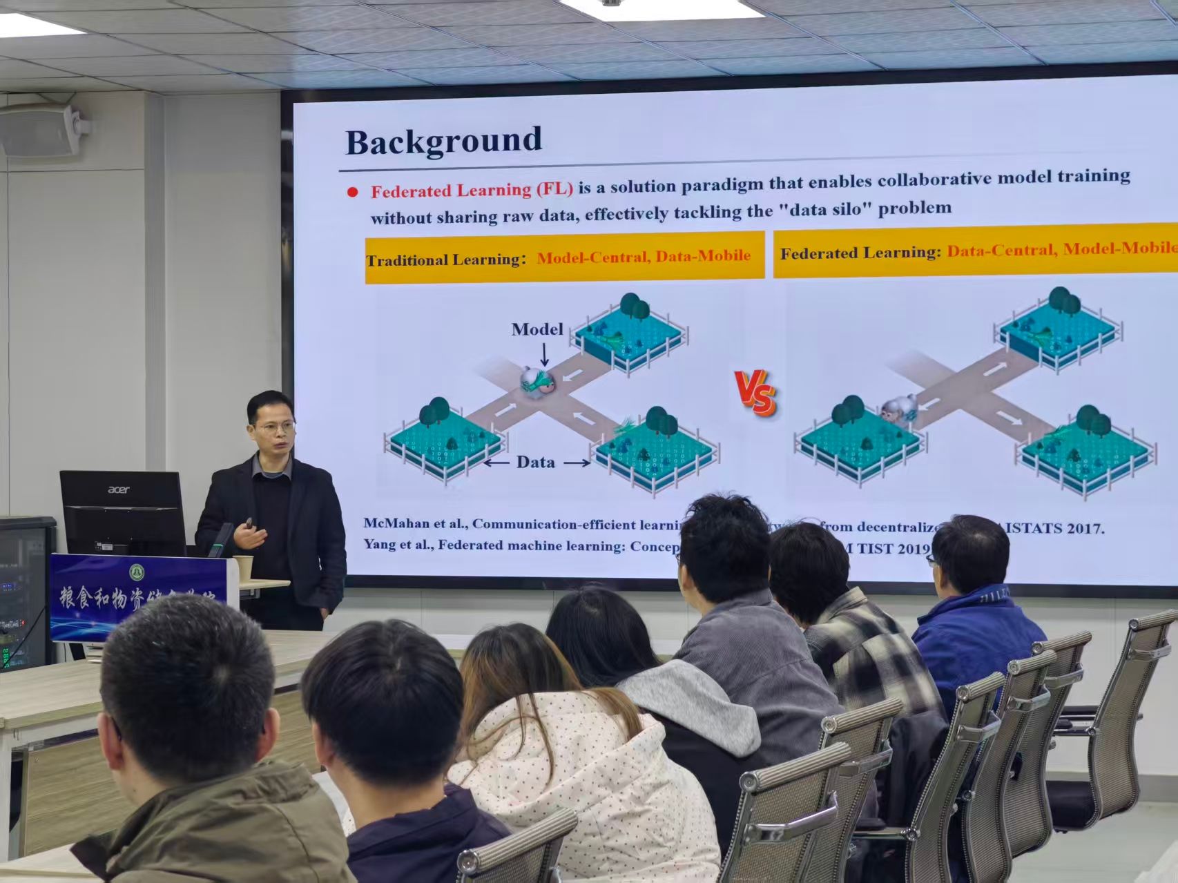 为进一步深化学科交叉融合,赋能学校粮食储藏优势学科创新发展,扎实推进“学术创新年”活动走深走实,11月11日下午,粮食和物资储备学院特别邀请西安交通大学曾锦山教授来校开展学术交流,并作题为《高效公平的联邦大语言模型》的专题学术报告。学院党委书记代辉亚、院长吴文福及全体教师、研究生代表参加报告会,会议由代辉亚主持。