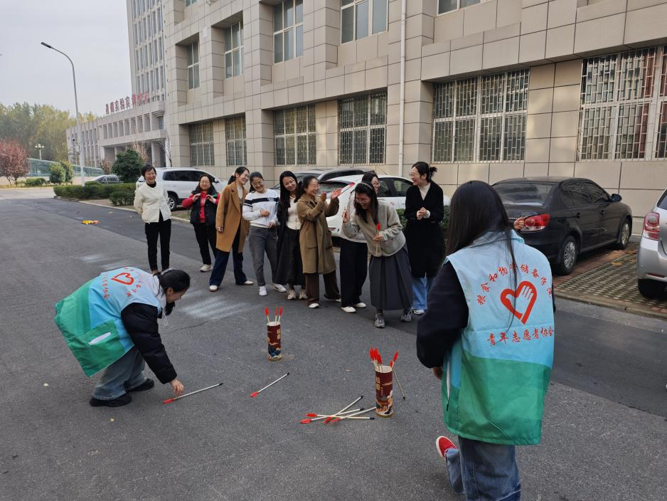 中秋月圆,国庆同辉。为弘扬中华优秀传统文化,丰富教职工精神文化生活,营造温馨和谐的节日氛围,粮食和物资储备学院工会于11月18日在40号楼南门成功举办了以“投壶雅趣·串珠传情”为主题的趣味活动。活动由学院工会主席梁艳主持,大家在体验古典雅趣、感受团队协作的同时,放松身心,增进情谊,进一步提升作为“储备人”的幸福感与归属感,凝聚起推动学院发展的强大合力。