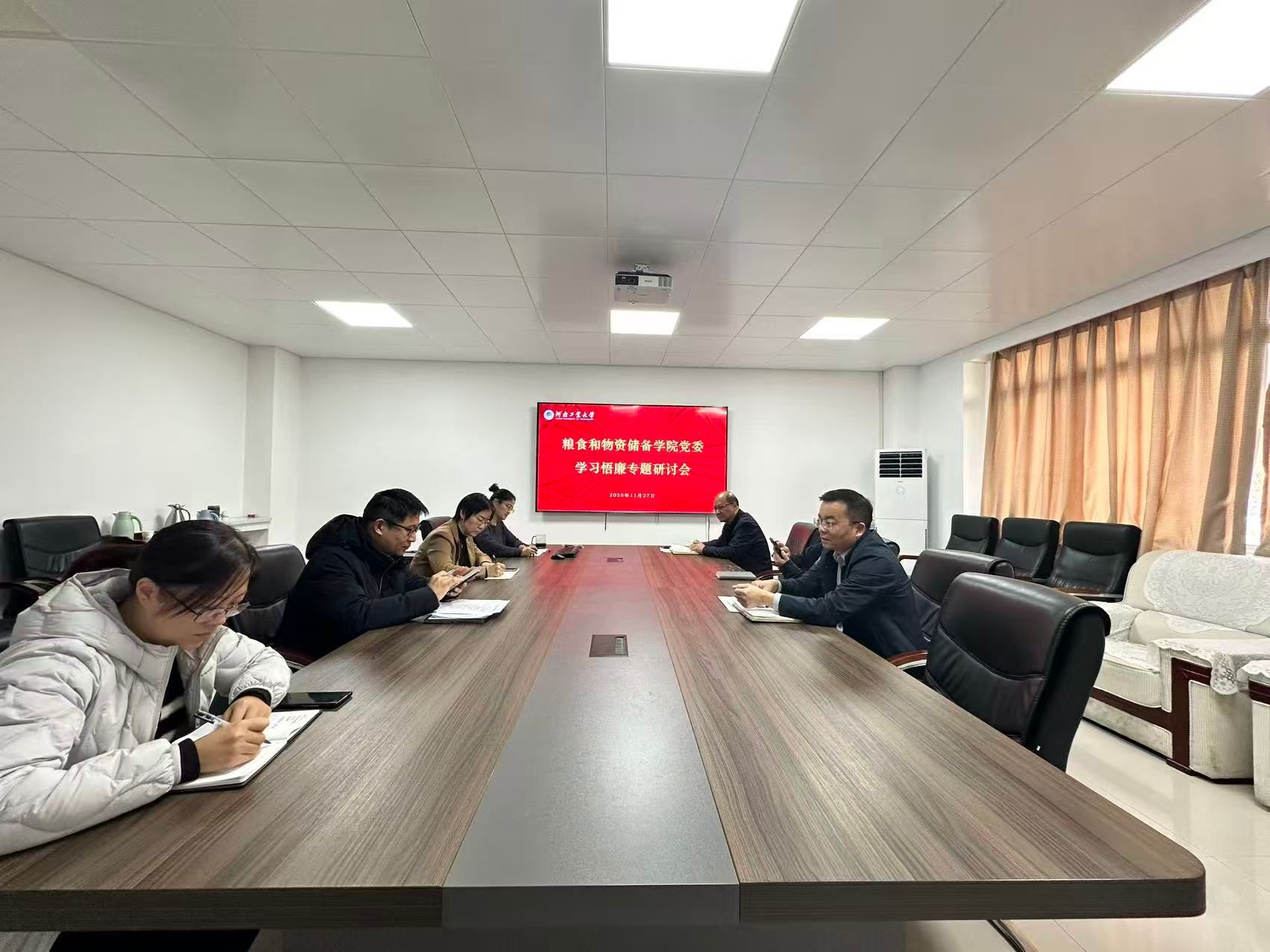 为深入贯彻中央八项规定精神要求,将廉洁文化建设融入学院发展与人才培养全过程,11月27日,河南工业大学粮食和物资储备学院党委召开“学习悟廉”专题研讨会。会议聚焦“筑牢廉洁防线、深化全面从严治党”核心主题,结合党建与学院工作实际开展深度研讨,学院党委班子成员及系部负责人参会,党委书记代辉亚主持会议。