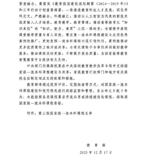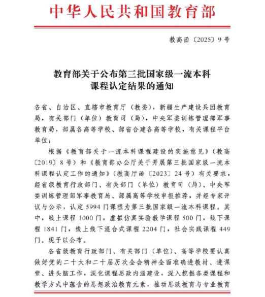 近日,教育部正式公布第三批国家级一流本科课程认定结果。我院赵妍教授主讲的《粮油储藏学(A)》课程成功入选,为学院新增一门国家级一流本科课程,标志着我院在教育教学质量和学科专业建设方面取得重要进展。