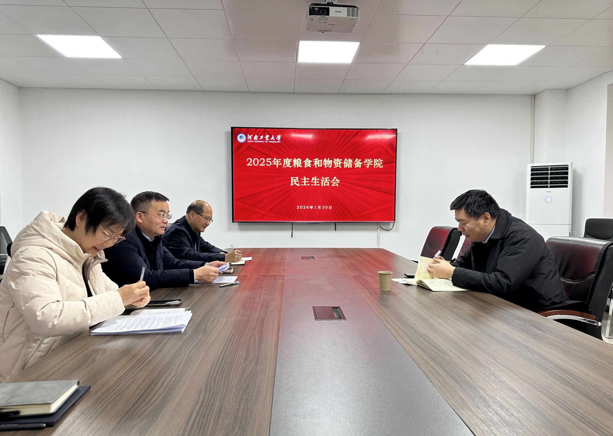 1月30日,粮食和物资储备学院召开2025年度民主生活会。学院党委书记代辉亚主持会议,学院领导班子成员参会,校纪委副书记王洪江到会指导并讲话。